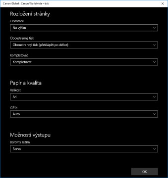 Pokud prostředí neumožňuje instalaci pomocí instalačního programu, budete moci použít standardní obrazovku nastavení tisku systému Windows.