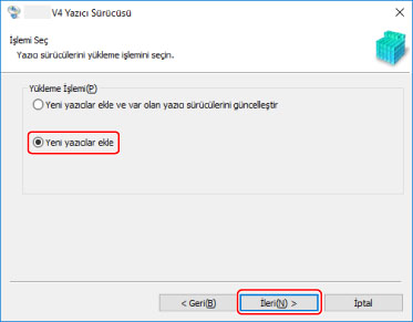 [Yeni yazıcılar ekle ve var olan yazıcı sürücülerini güncelleştir]: Yeni bir sürücü eklerken halihazırda yüklü sürücüleri de aynı anda güncellemek istediğinizde bu öğeyi seçin.