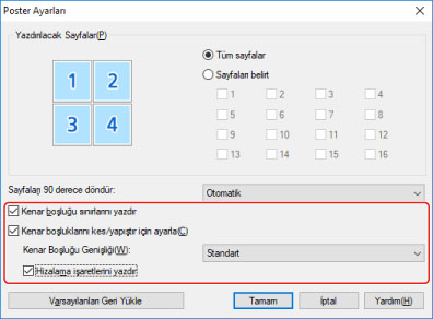 [Poster Ayarları] iletişim kutusundaki ayrıntılı ayarlar