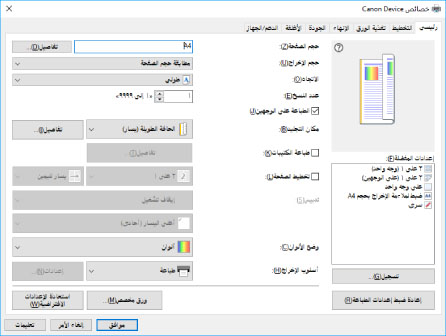 يمكنك عرض شاشة إعدادات الطباعة حسب الإجراء التالي.