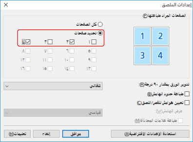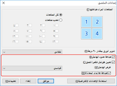 في حال رغبت بضبط تفاصيل مثل نطاق الصفحات المراد طباعتها، الطباعة مع خطوط الحدود، إلخ، نفذ الإجراء التالي.