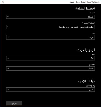 يتم عرض شاشة إعدادات الطباعة Windows القياسية