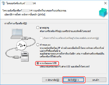 เลือก [การเชื่อมต่อ USB] → คลิก [ถัดไป]