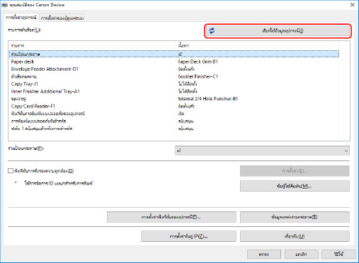 คลิก [เรียกใช้ข้อมูลอุปกรณ์]