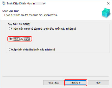 [Cập nhật trình điều khiển máy in hiện có]: Chọn phần này nếu bạn chỉ muốn cập nhật trình điều khiển. Để biết thêm chi tiết, tham khảo quy trình cập nhật trình điều khiển.