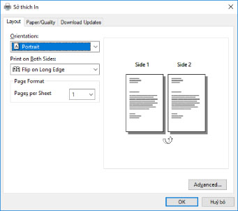 Chọn [Tùy Chỉnh] cho [Cài Đặt Máy In] → nhấp vào [Tiếp].