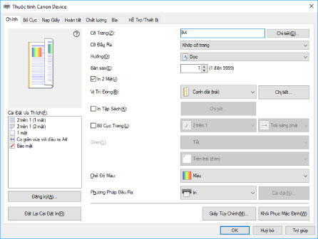 Bạn có thể hiển thị màn hình cài đặt in bằng quy trình sau.