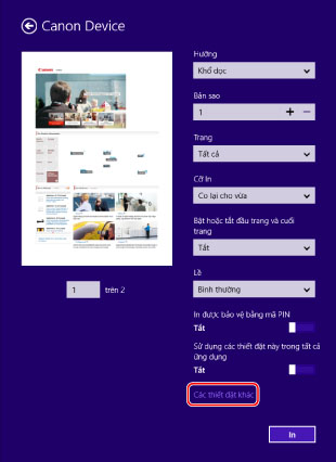 Để In từ Một Ứng Dụng từ Store trong Windows 8.1/Server 2012 R2