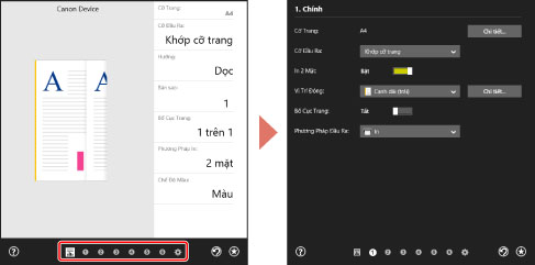 Nếu chức năng mà bạn muốn sử dụng không được hiển thị trên màn hình cài đặt in, cấu hình các cài đặt in sau khi bật các tính năng của thiết bị bằng cách truy xuất thông tin thiết bị, v.v...