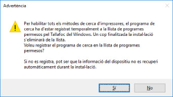 Si apareix el missatge següent, confirmeu-lo i feu clic a [Sí] or [No].