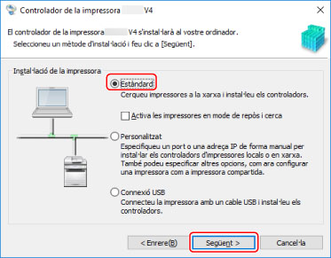 Seleccioneu [Estàndard] → feu clic a [Següent].