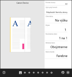 Pri tlači z aplikácií z Obchodu sa zobrazí nasledujúca obrazovka s nastaveniami tlače.