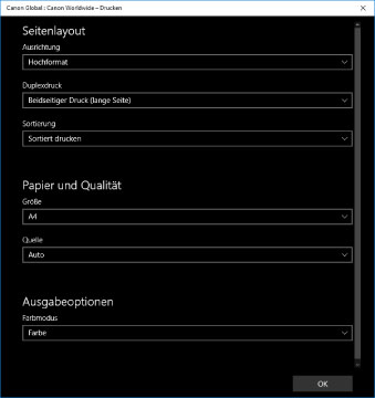 Wenn Sie über eine Store-App drucken, konfigurieren Sie die App so, dass der Druckeinstellungsbildschirm des Treibers angezeigt wird