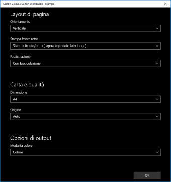 Viene visualizzata la schermata delle impostazioni di stampa standard di Windows