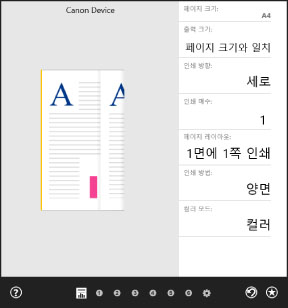 이 드라이버를 통해 Windows 스토어 앱과 데스크톱 앱을 지원하는 드라이버의 인쇄 설정 화면을 표시하고, Canon 디바이스의 인쇄 기능을 사용할 수 있습니다.