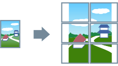 한 페이지의 인쇄 데이터를 확대하여 여러 장의 용지에 나누어 인쇄할 수 있습니다. 여러 장에 출력된 용지를 합치면 포스터 같은 대형 인쇄물을 만들 수 있습니다.