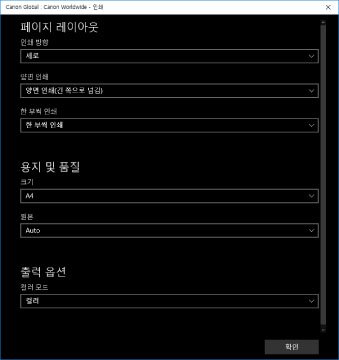 앱이 Windows 표준 인쇄 설정 화면이 표시되도록 설정됩니다.