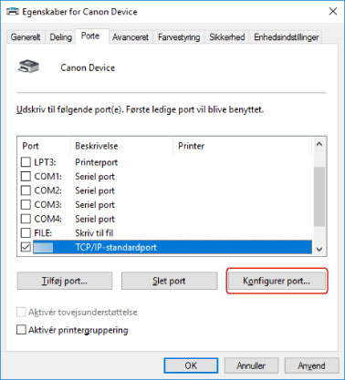 Hvis du midlertidigt indstiller en port for enheden, når du installerer driveren, skal du ændre den til en korrekt port ved at følge denne procedure.