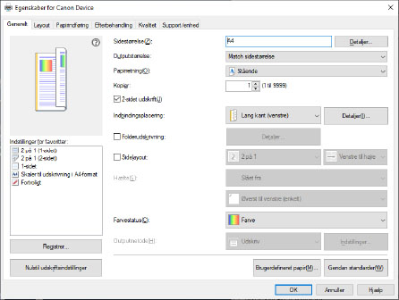 Denne driver gør det muligt at få vist skærmbilledet med udskriftsindstillinger for drivere, der understøtter Windows Store-apps og desktop-apps, og som bruger udskrivningsfunktionerne i Canon-enheder.