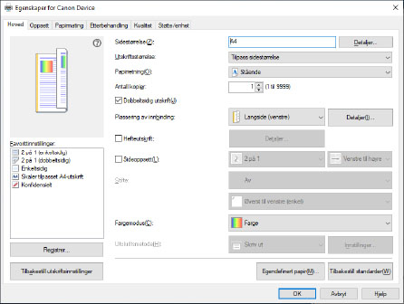 Følgende skjermbilde med utskriftsinnstillinger vises når du skriver ut fra skrivebordsapper.