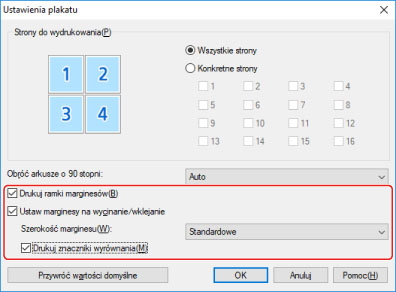 Ustawienia drukowania plakatów oraz przykłady drukowania