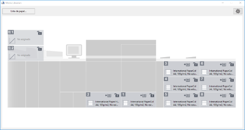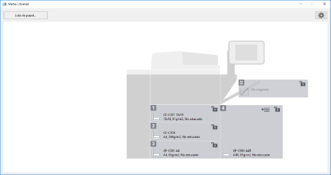 Se muestra haciendo clic en [Lista de papel] en la pantalla principal. Se muestran los tipos personalizados que pueden utilizarse con su impresora.
