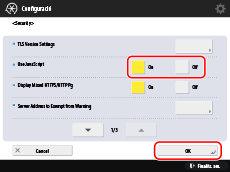 Premeu [Security] → seleccioneu [On] per a [Use JavaScript] → [OK].