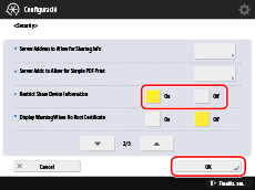 Seleccioneu [On] per a [Restrict Share Device Information] → premeu [OK].