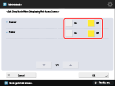 Premeu [Exit Sleep Mode When Displ. Web Access Scrn] → especifiqueu les opcions per sortir del mode repòs.