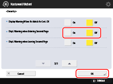 Když je volba [Displ Warning when Entering Secured Page] nastavena na [Off]