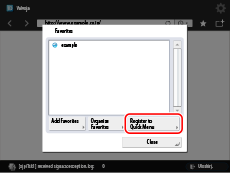 Voit lisätä usein katsottuja verkkosivuja pikavalikkoon. Pikavalikkoon tallennetut verkkosivut näytetään painikkeina pikavalikkonäytössä. Kun lisäät verkkosivun pikavalikkoon, voit avata verkkosivun helposti.