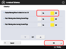 Valitse [Security] → valitse [On] tai [Off] kohdassa [Display Warning When No Match for Cert. CN] → [OK].