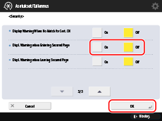 Valitse [Security] → valitse [On] tai [Off] kohdassa [Displ Warning when Entering Secured Page] → [OK].