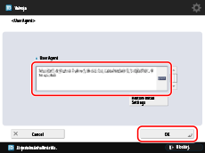 Valitse [User Agent] -tekstikenttä → syötä haluttu [User Agent] -asetus → valitse [OK].
