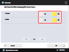 Druk op [Exit Sleep Mode When Displ. Web Access Scrn] → geef de instellingen voor het opheffen van de sluimerstand op.