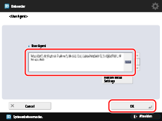 Druk op het tekstinvoerveld [User Agent] → voer de gewenste instelling van [User Agent] in → druk op [OK].