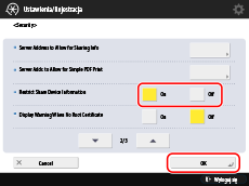 Wybierz opcję [On] dla [Restrict Share Device Information] → naciśnij przycisk [OK].