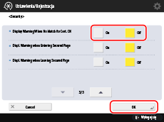 Naciśnij przycisk [Security] → wybierz [On] lub [Off] dla [Display Warning When No Match for Cert. CN] → [OK].