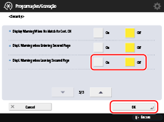 Carregue em [Security] → selecione [On] ou [Off] para [Displ. Warning when Leaving Secured Page] → [OK].