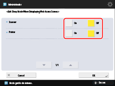Carregue em [Exit Sleep Mode When Displ. Web Access Scrn] → especifique as programações para sair do modo Sleep.
