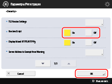 Нажмите [Security] → выберите [On] для [Use JavaScript] → [OK].