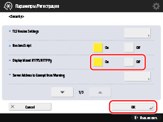 Нажмите [Security] → выберите [On] для [Display Mixed HTTPS/HTTP Pg] → нажмите [OK].