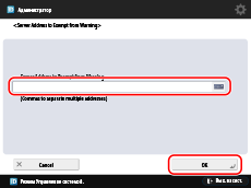 Нажмите [Security] → [Server Address to Exempt from Warning].