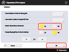 Даже если это ограничение установлено в положение [On], сведения об устройстве все равно отображаются при обмене данными с серверами, установленными как надежные.