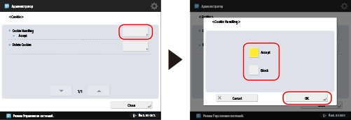 Нажмите [Cookie Handling] → выберите, следует ли получать файлы cookie → нажмите [OK].