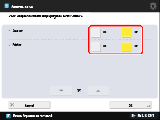 Нажмите [Exit Sleep Mode When Displ. Web Access Scrn] → укажите параметры для выхода из спящего режима.