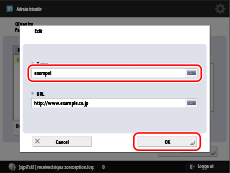 Om du trycker på [OK] utan att ange ett namn i namnfältet registreras URL-adressen som namn.
