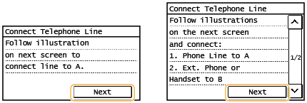 Select <Next> after the telephone line has been connected.