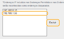 Excluindo um endereço IP das exceções Selecione um endereço IP e clique em [Excluir]. |