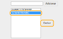 2 | Especifique as exceções de endereço. Digite o endereço MAC na caixa de texto [Endereço a ser Registrado] e clique em [Adicionar]. Não é necessário delimitar o endereço com hifens ou dois pontos. ![]() Verifique se há erros de entrada Se os endereços MAC forem digitados incorretamente, é possível que você não possa acessar a máquina da Interface Remota e, nesse caso, você precisará definir <Filtro de Endereço MAC> como <Desativado>. <Filtro de Endereço MAC> ![]() Excluindo um endereço MAC das exceções Selecione um endereço MAC e clique em [Excluir]. ![]() |